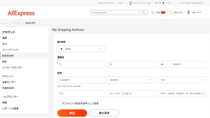 しかし、実際に買い物をする為には配送先住所や支払い方法等を設定する必要があります。